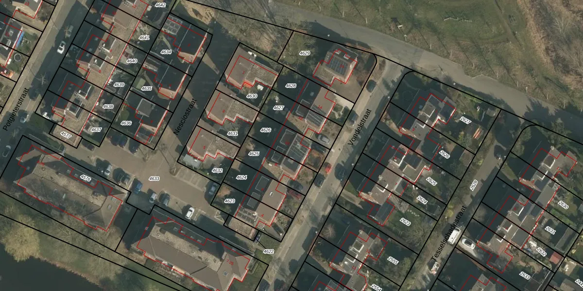 Gebruik de zoekbalk of klik op een perceel voor informatie over de adressen binnen dit perceel.