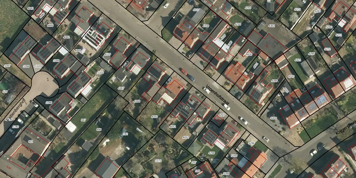 Vroenhofstraat 10 is gelegen op kadastraal perceel BEE02A4050. Deze kadastrale aanduiding is uniek en wordt gebruikt door het Kadaster om eigendomsrechten en andere zakelijke rechten vast te leggen. Het perceel maakt onderdeel uit van de kadastrale gemeente Beek.