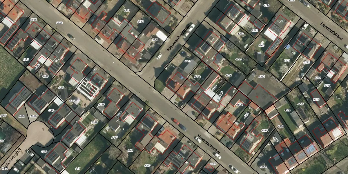 Het perceel waarop Vroenhofstraat 11 staat heeft een oppervlakte van 390 m². Dit is een groot perceel. De perceeloppervlakte wordt geregistreerd door het Kadaster. Gedetailleerde informatie over de maten van dit perceel kunt u vinden in het rapport Kadastrale kaart met maatvoering van Vroenhofstraat 11.
