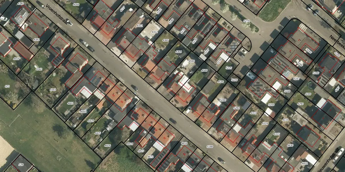 Vroenhofstraat 31 is gelegen op kadastraal perceel BEE02A4590. Deze kadastrale aanduiding is uniek en wordt gebruikt door het Kadaster om eigendomsrechten en andere zakelijke rechten vast te leggen. Het perceel maakt onderdeel uit van de kadastrale gemeente Beek.