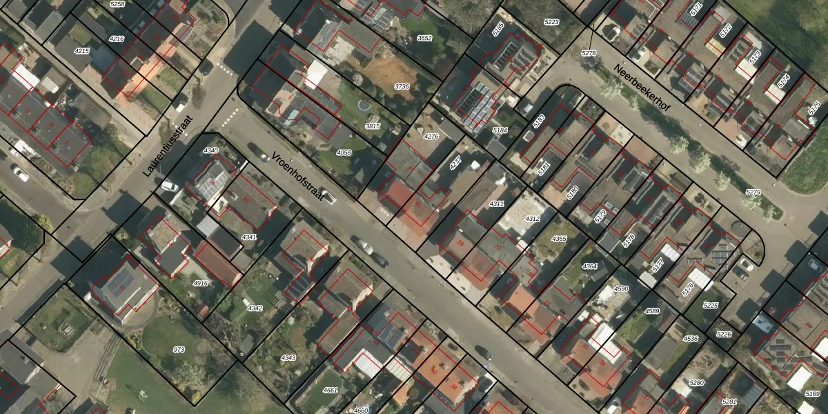Vroenhofstraat 41 is gelegen op kadastraal perceel BEE02A4277. Deze kadastrale aanduiding is uniek en wordt gebruikt door het Kadaster om eigendomsrechten en andere zakelijke rechten vast te leggen. Het perceel maakt onderdeel uit van de kadastrale gemeente Beek.