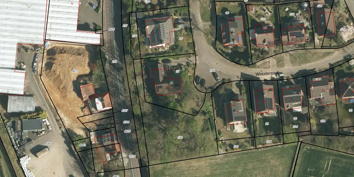 Wouderpad 25 is gelegen op kadastraal perceel BEE02K27. Deze kadastrale aanduiding is uniek en wordt gebruikt door het Kadaster om eigendomsrechten en andere zakelijke rechten vast te leggen. Het perceel maakt onderdeel uit van de kadastrale gemeente Beek.