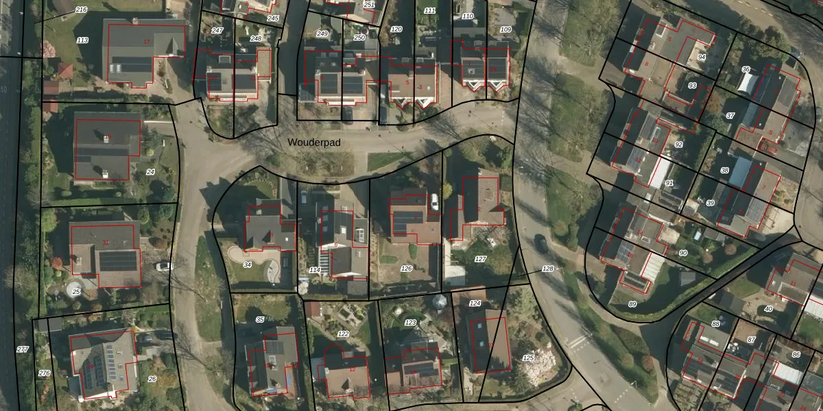 Het perceel waarop Wouderpad 4 staat heeft een oppervlakte van 563 m². Dit is een groot perceel. De perceeloppervlakte wordt geregistreerd door het Kadaster. Gedetailleerde informatie over de maten van dit perceel kunt u vinden in het rapport Kadastrale kaart met maatvoering van Wouderpad 4.