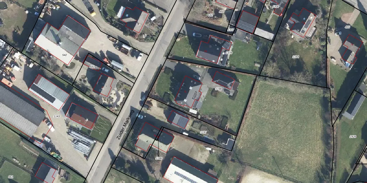 Het perceel waarop Zuider Markweg 1-c staat heeft een oppervlakte van 1505 m². Dit is een zeer groot perceel. De perceeloppervlakte wordt geregistreerd door het Kadaster. Gedetailleerde informatie over de maten van dit perceel kunt u vinden in het rapport Kadastrale kaart met maatvoering van Zuider Markweg 1-c.
