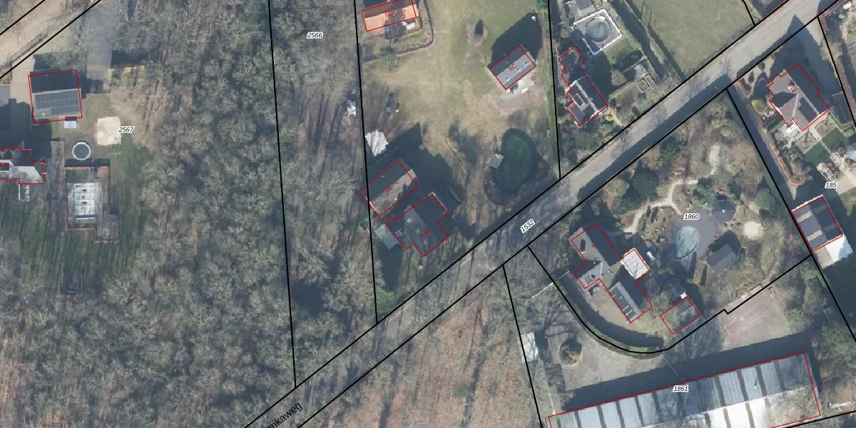 Het perceel waarop Amerikaweg 5-A staat heeft een oppervlakte van 5450 m². Dit is een zeer groot perceel. De perceeloppervlakte wordt geregistreerd door het Kadaster. Gedetailleerde informatie over de maten van dit perceel kunt u vinden in het rapport Kadastrale kaart met maatvoering van Amerikaweg 5-A.