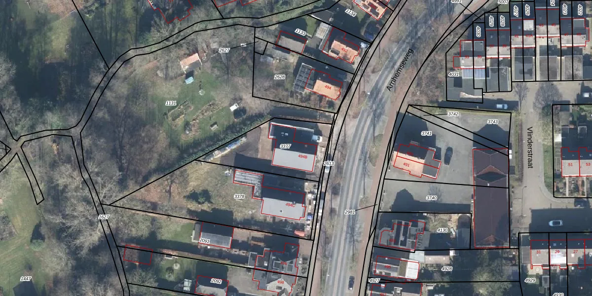 Arnhemseweg 494-B is gelegen op kadastraal perceel BBG01M3377. Deze kadastrale aanduiding is uniek en wordt gebruikt door het Kadaster om eigendomsrechten en andere zakelijke rechten vast te leggen. Het perceel maakt onderdeel uit van de kadastrale gemeente Beekbergen.