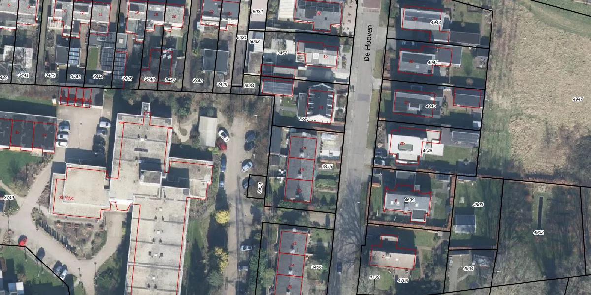Het perceel waarop De Hoeven 16 staat heeft een oppervlakte van 677 m². Dit is een groot perceel. De perceeloppervlakte wordt geregistreerd door het Kadaster. Gedetailleerde informatie over de maten van dit perceel kunt u vinden in het rapport Kadastrale kaart met maatvoering van De Hoeven 16.