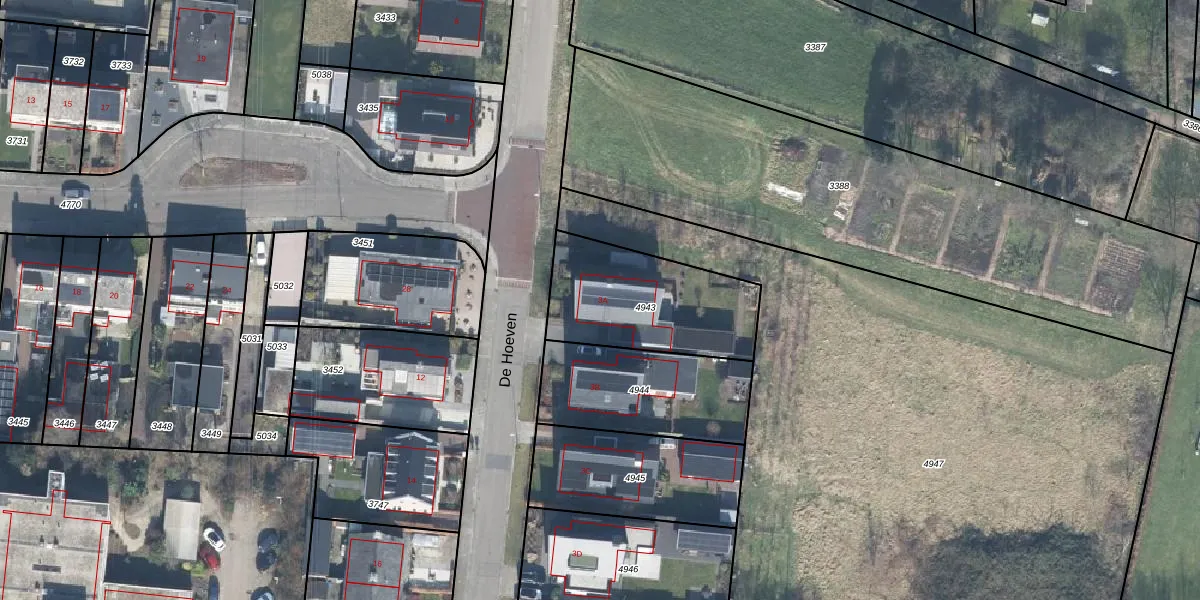 Het perceel waarop De Hoeven 3-A staat heeft een oppervlakte van 546 m². Dit is een groot perceel. De perceeloppervlakte wordt geregistreerd door het Kadaster. Gedetailleerde informatie over de maten van dit perceel kunt u vinden in het rapport Kadastrale kaart met maatvoering van De Hoeven 3-A.