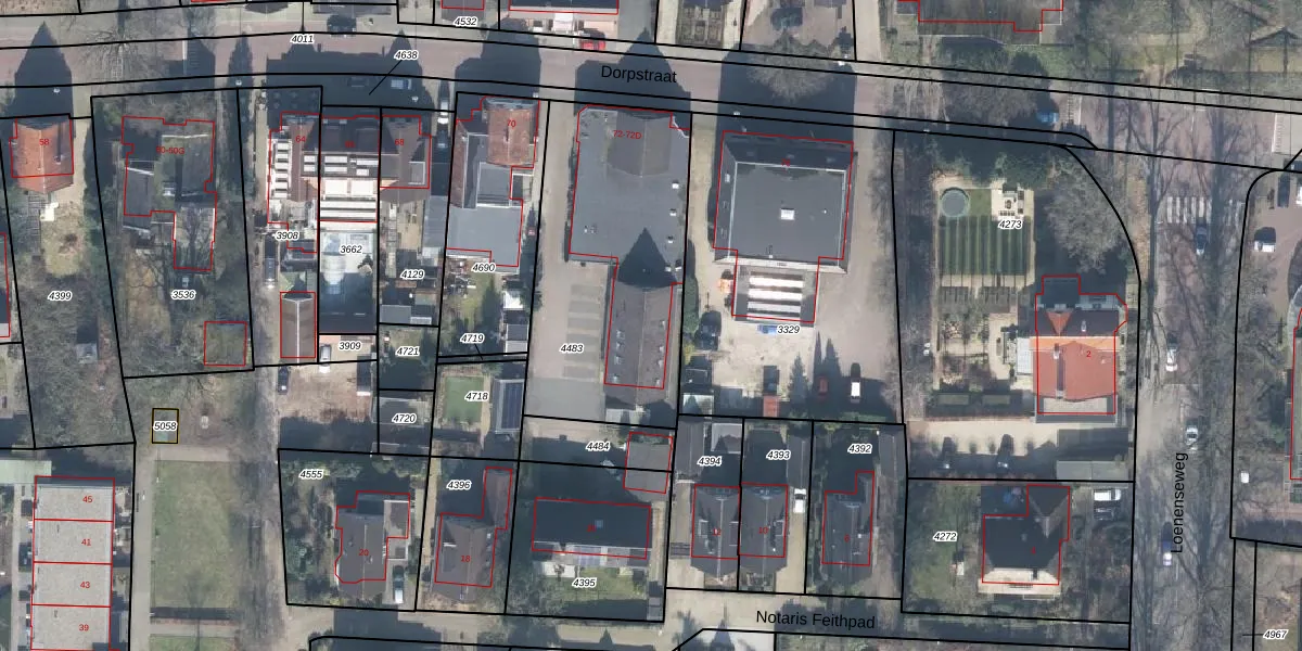 Het perceel waarop Dorpstraat 72-C staat heeft een oppervlakte van 1105 m². Dit is een zeer groot perceel. De perceeloppervlakte wordt geregistreerd door het Kadaster. Gedetailleerde informatie over de maten van dit perceel kunt u vinden in het rapport Kadastrale kaart met maatvoering van Dorpstraat 72-C.