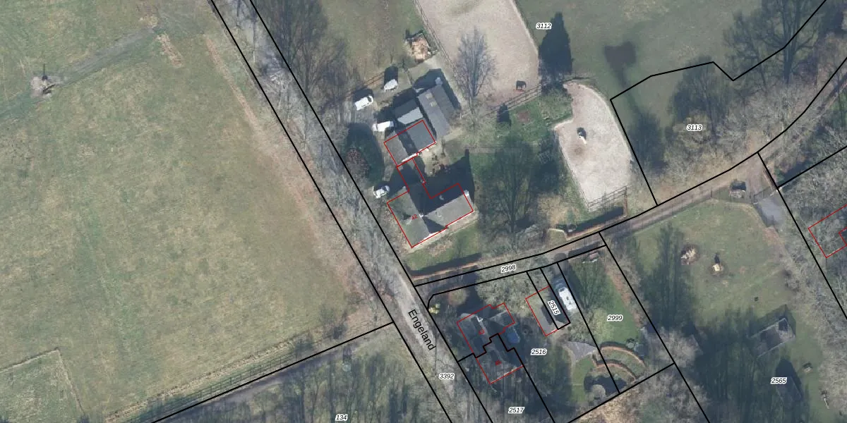 Het perceel waarop Engeland 42 staat heeft een oppervlakte van 1,1 ha. Dit is een zeer groot perceel. De perceeloppervlakte wordt geregistreerd door het Kadaster. Gedetailleerde informatie over de maten van dit perceel kunt u vinden in het rapport Kadastrale kaart met maatvoering van Engeland 42.