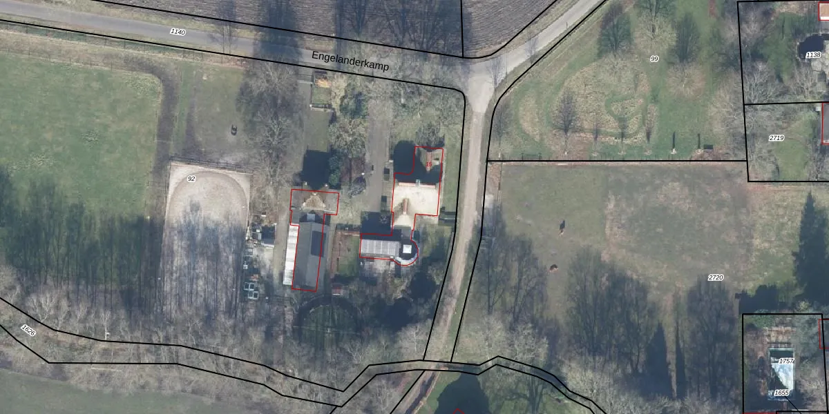 Het perceel waarop Engelanderkamp 15 staat heeft een oppervlakte van 8250 m². Dit is een zeer groot perceel. De perceeloppervlakte wordt geregistreerd door het Kadaster. Gedetailleerde informatie over de maten van dit perceel kunt u vinden in het rapport Kadastrale kaart met maatvoering van Engelanderkamp 15.