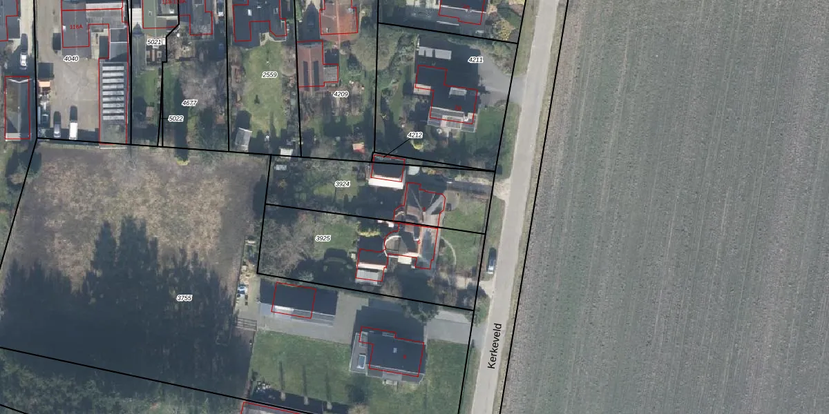 Kerkeveld 4 is gelegen op kadastraal perceel BBG01K3924. Deze kadastrale aanduiding is uniek en wordt gebruikt door het Kadaster om eigendomsrechten en andere zakelijke rechten vast te leggen. Het perceel maakt onderdeel uit van de kadastrale gemeente Beekbergen.