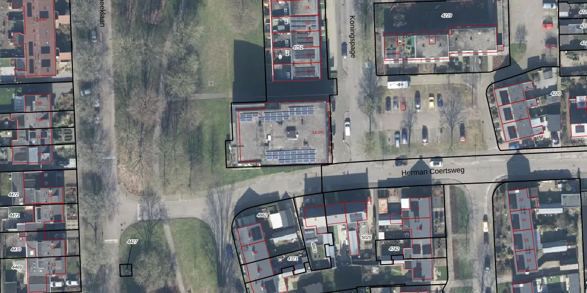 Koningspage 1-E is gelegen op kadastraal perceel BBG01K4751. Deze kadastrale aanduiding is uniek en wordt gebruikt door het Kadaster om eigendomsrechten en andere zakelijke rechten vast te leggen. Het perceel maakt onderdeel uit van de kadastrale gemeente Beekbergen.