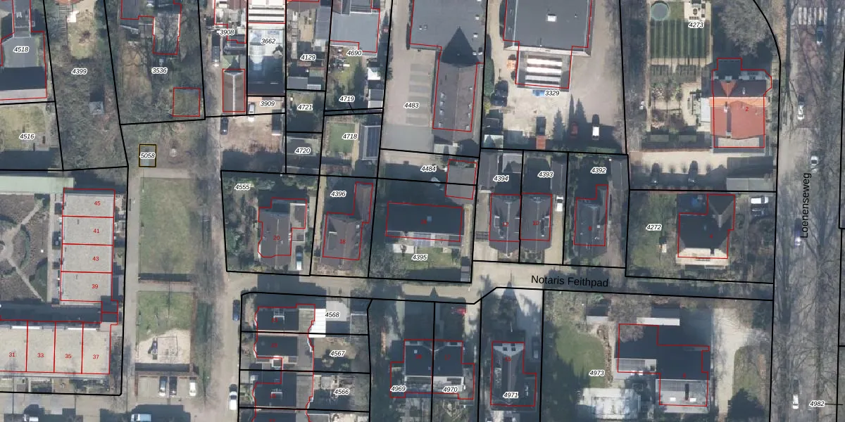 Het perceel waarop Notaris Feithpad 16 staat heeft een oppervlakte van 563 m². Dit is een groot perceel. De perceeloppervlakte wordt geregistreerd door het Kadaster. Gedetailleerde informatie over de maten van dit perceel kunt u vinden in het rapport Kadastrale kaart met maatvoering van Notaris Feithpad 16.