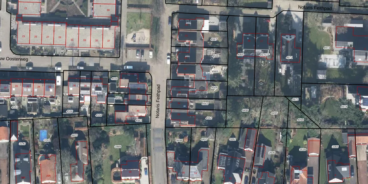 Notaris Feithpad 29 is gelegen op kadastraal perceel BBG01K4564. Deze kadastrale aanduiding is uniek en wordt gebruikt door het Kadaster om eigendomsrechten en andere zakelijke rechten vast te leggen. Het perceel maakt onderdeel uit van de kadastrale gemeente Beekbergen.