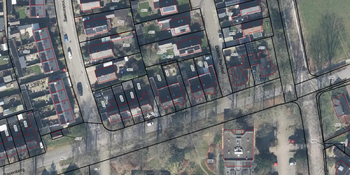 Gebruik de zoekbalk of klik op een perceel voor informatie over de adressen binnen dit perceel.