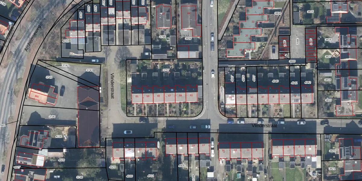 Vlinderstraat 59 is gelegen op kadastraal perceel BBG01K3797. Deze kadastrale aanduiding is uniek en wordt gebruikt door het Kadaster om eigendomsrechten en andere zakelijke rechten vast te leggen. Het perceel maakt onderdeel uit van de kadastrale gemeente Beekbergen.