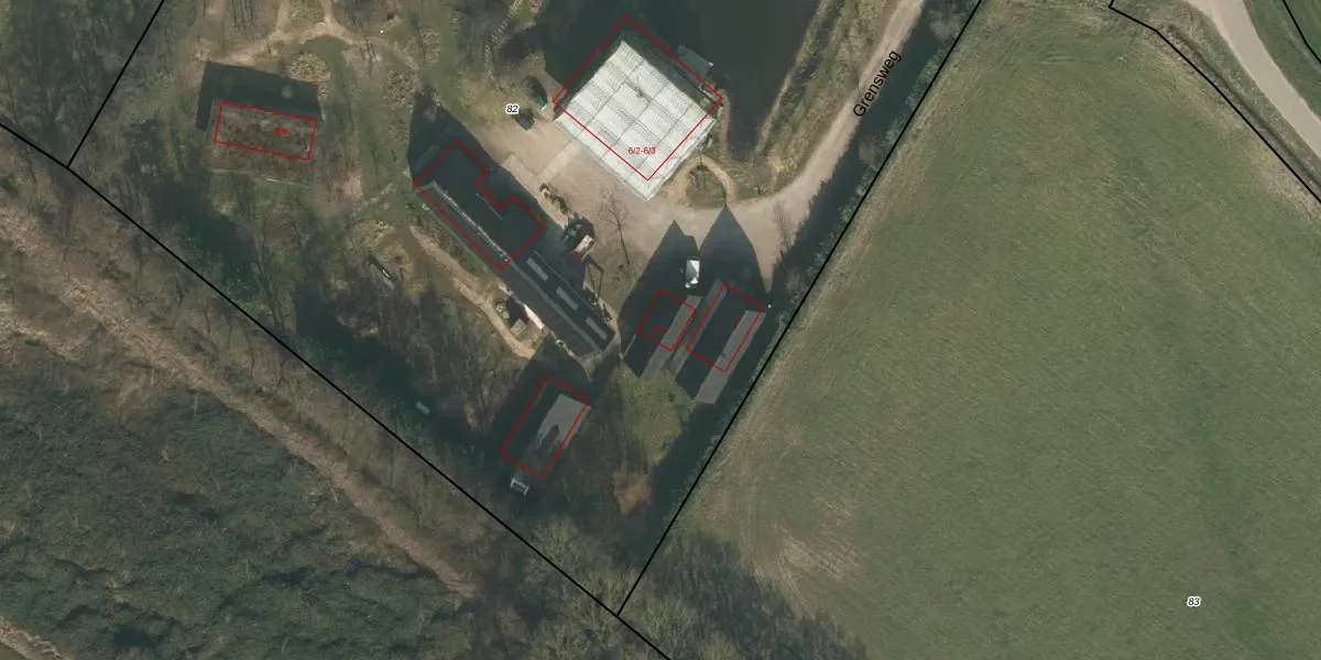 Het perceel waarop Grensweg 6-1 staat heeft een oppervlakte van 1,1 ha. Dit is een zeer groot perceel. De perceeloppervlakte wordt geregistreerd door het Kadaster. Gedetailleerde informatie over de maten van dit perceel kunt u vinden in het rapport Kadastrale kaart met maatvoering van Grensweg 6-1.