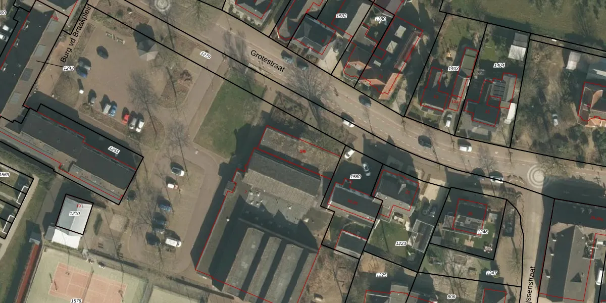 Grotestraat 14 is gelegen op kadastraal perceel CUI00P1578. Deze kadastrale aanduiding is uniek en wordt gebruikt door het Kadaster om eigendomsrechten en andere zakelijke rechten vast te leggen. Het perceel maakt onderdeel uit van de kadastrale gemeente Cuijk.