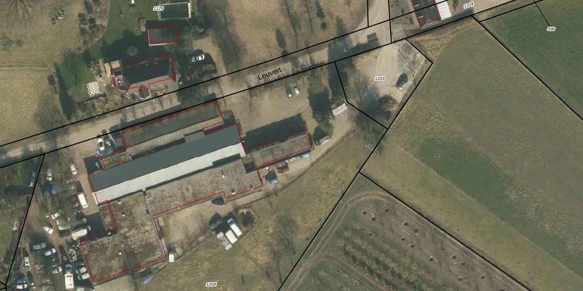 Het perceel waarop Leuvert 7 staat heeft een oppervlakte van 9935 m². Dit is een zeer groot perceel. De perceeloppervlakte wordt geregistreerd door het Kadaster. Gedetailleerde informatie over de maten van dit perceel kunt u vinden in het rapport Kadastrale kaart met maatvoering van Leuvert 7.