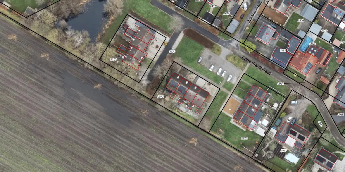 Het perceel waarop Anne Frankstraat 31 staat heeft een oppervlakte van 797 m². Dit is een groot perceel. De perceeloppervlakte wordt geregistreerd door het Kadaster. Gedetailleerde informatie over de maten van dit perceel kunt u vinden in het rapport Kadastrale kaart met maatvoering van Anne Frankstraat 31.