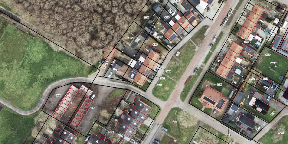 Gebruik de zoekbalk of klik op een perceel voor informatie over de adressen binnen dit perceel.