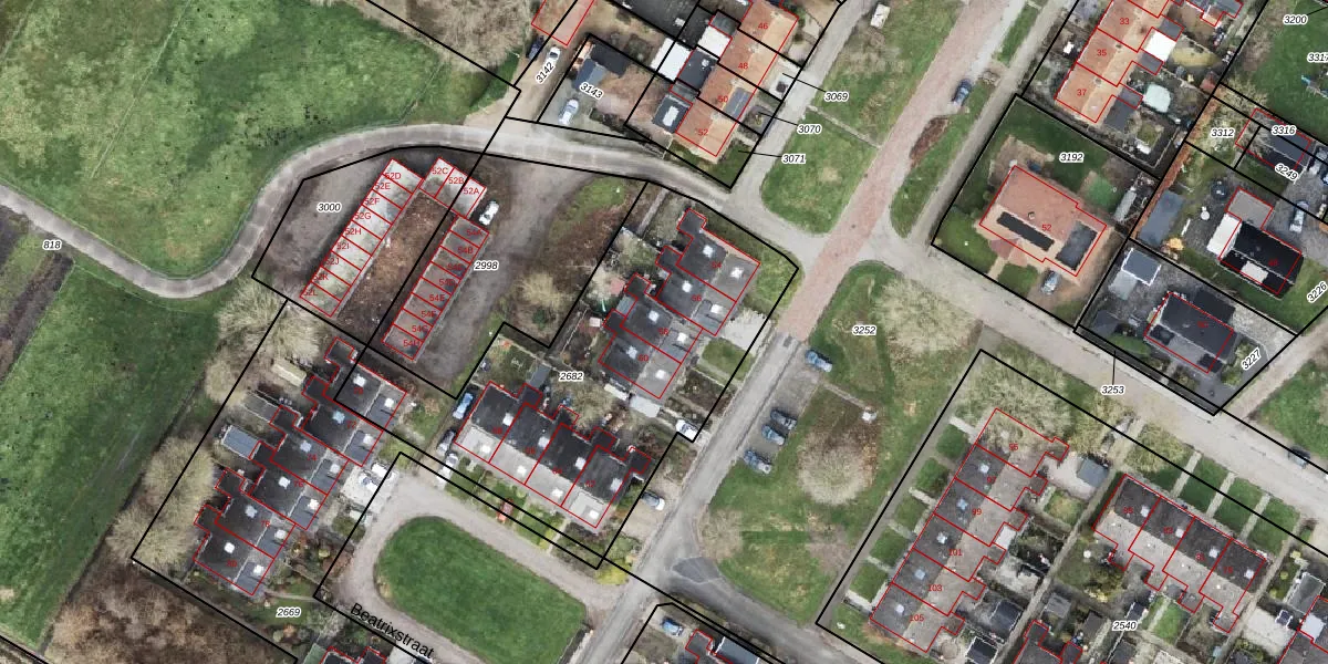 Het perceel waarop Beatrixstraat 58 staat heeft een oppervlakte van 1652 m². Dit is een zeer groot perceel. De perceeloppervlakte wordt geregistreerd door het Kadaster. Gedetailleerde informatie over de maten van dit perceel kunt u vinden in het rapport Kadastrale kaart met maatvoering van Beatrixstraat 58.