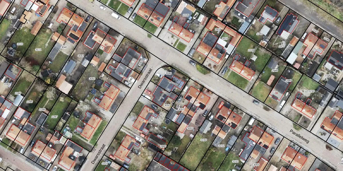 Het perceel waarop Dwarsstraat 1 staat heeft een oppervlakte van 239 m². Dit is een middelgroot perceel. De perceeloppervlakte wordt geregistreerd door het Kadaster. Gedetailleerde informatie over de maten van dit perceel kunt u vinden in het rapport Kadastrale kaart met maatvoering van Dwarsstraat 1.