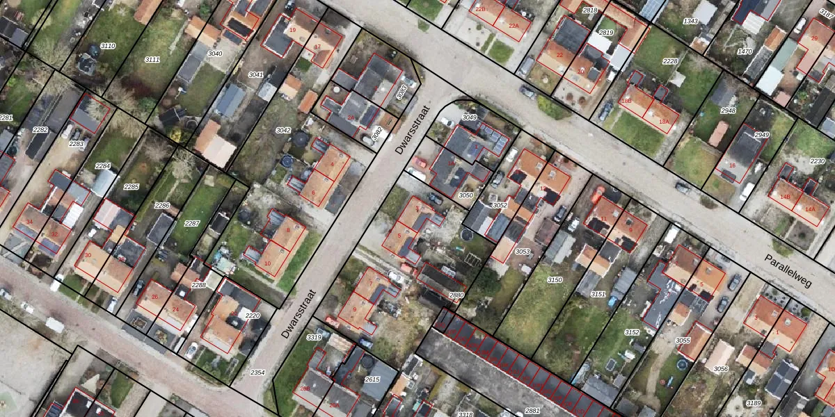 Het perceel waarop Dwarsstraat 3 staat heeft een oppervlakte van 2115 m². Dit is een zeer groot perceel. De perceeloppervlakte wordt geregistreerd door het Kadaster. Gedetailleerde informatie over de maten van dit perceel kunt u vinden in het rapport Kadastrale kaart met maatvoering van Dwarsstraat 3.