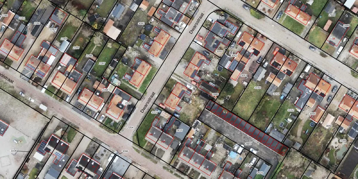 Het perceel waarop Dwarsstraat 7 staat heeft een oppervlakte van 2115 m². Dit is een zeer groot perceel. De perceeloppervlakte wordt geregistreerd door het Kadaster. Gedetailleerde informatie over de maten van dit perceel kunt u vinden in het rapport Kadastrale kaart met maatvoering van Dwarsstraat 7.