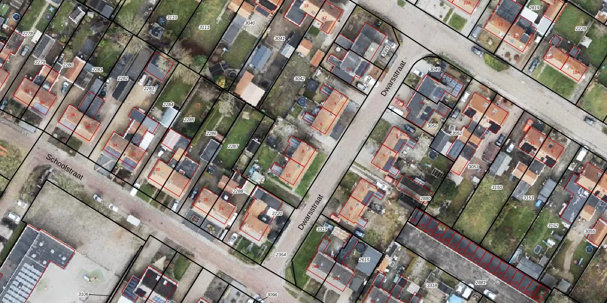 Het perceel waarop Dwarsstraat 8 staat heeft een oppervlakte van 1332 m². Dit is een zeer groot perceel. De perceeloppervlakte wordt geregistreerd door het Kadaster. Gedetailleerde informatie over de maten van dit perceel kunt u vinden in het rapport Kadastrale kaart met maatvoering van Dwarsstraat 8.