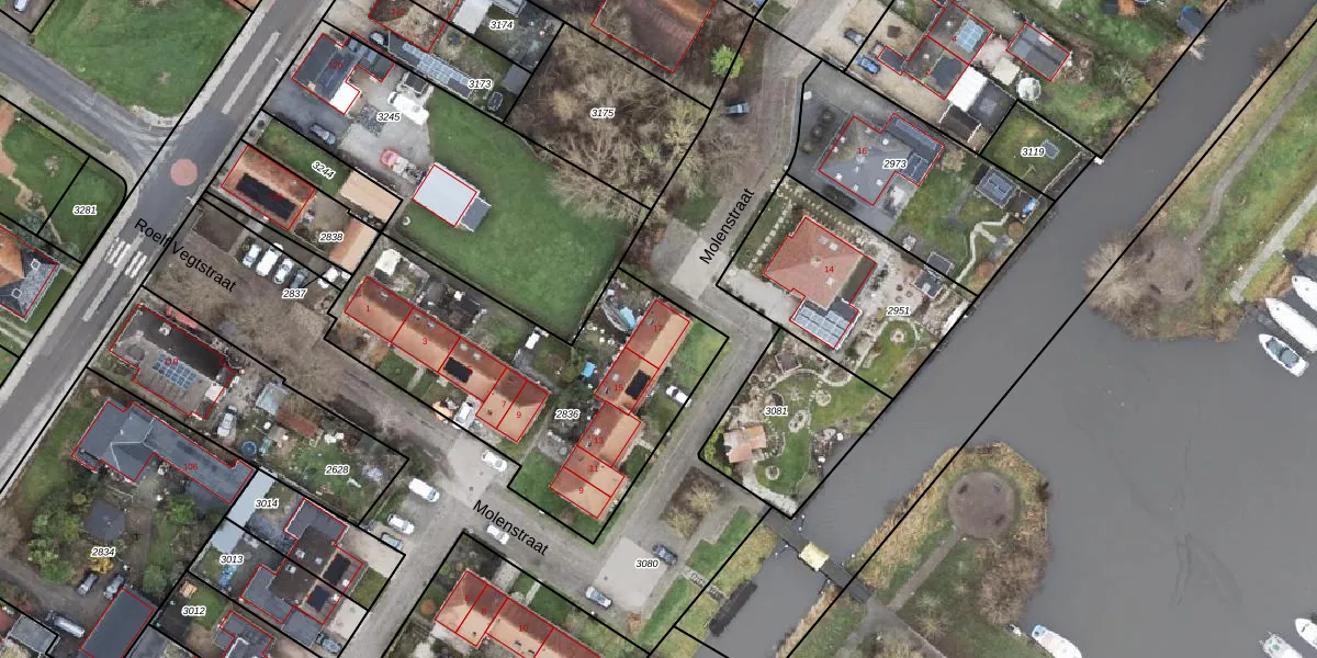 Het perceel waarop Molenstraat 17 staat heeft een oppervlakte van 1343 m². Dit is een zeer groot perceel. De perceeloppervlakte wordt geregistreerd door het Kadaster. Gedetailleerde informatie over de maten van dit perceel kunt u vinden in het rapport Kadastrale kaart met maatvoering van Molenstraat 17.