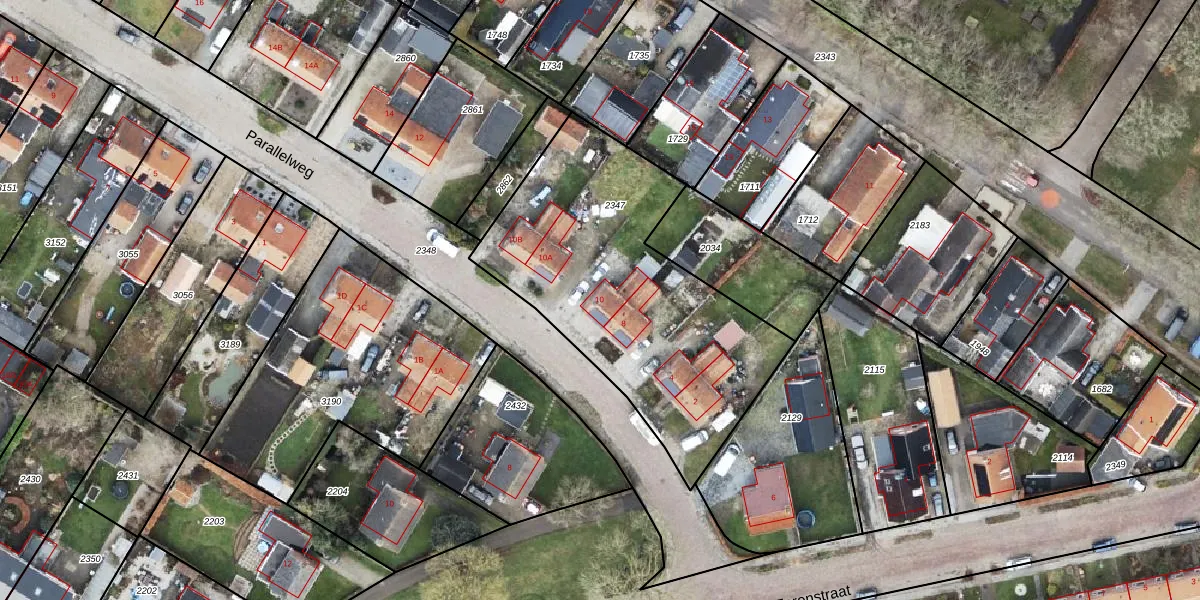 Het perceel waarop Parallelweg 10 staat heeft een oppervlakte van 1430 m². Dit is een zeer groot perceel. De perceeloppervlakte wordt geregistreerd door het Kadaster. Gedetailleerde informatie over de maten van dit perceel kunt u vinden in het rapport Kadastrale kaart met maatvoering van Parallelweg 10.
