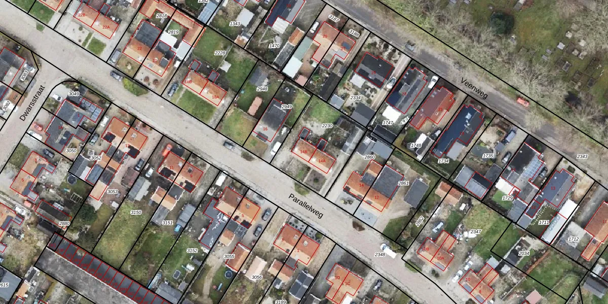 Parallelweg 14-B is gelegen op kadastraal perceel BTA00I2230. Deze kadastrale aanduiding is uniek en wordt gebruikt door het Kadaster om eigendomsrechten en andere zakelijke rechten vast te leggen. Het perceel maakt onderdeel uit van de kadastrale gemeente Beerta.