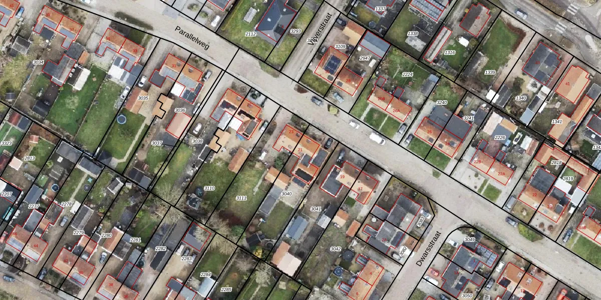Gebruik de zoekbalk of klik op een perceel voor informatie over de adressen binnen dit perceel.