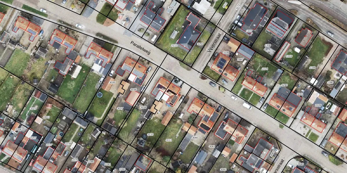 Het perceel waarop Parallelweg 25 staat heeft een oppervlakte van 547 m². Dit is een groot perceel. De perceeloppervlakte wordt geregistreerd door het Kadaster. Gedetailleerde informatie over de maten van dit perceel kunt u vinden in het rapport Kadastrale kaart met maatvoering van Parallelweg 25.