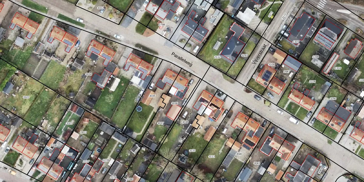 Het perceel waarop Parallelweg 29 staat heeft een oppervlakte van 505 m². Dit is een groot perceel. De perceeloppervlakte wordt geregistreerd door het Kadaster. Gedetailleerde informatie over de maten van dit perceel kunt u vinden in het rapport Kadastrale kaart met maatvoering van Parallelweg 29.