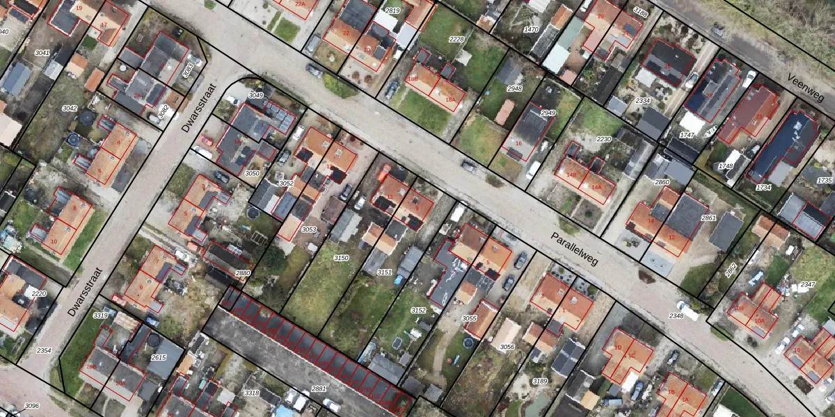 Gebruik de zoekbalk of klik op een perceel voor informatie over de adressen binnen dit perceel.