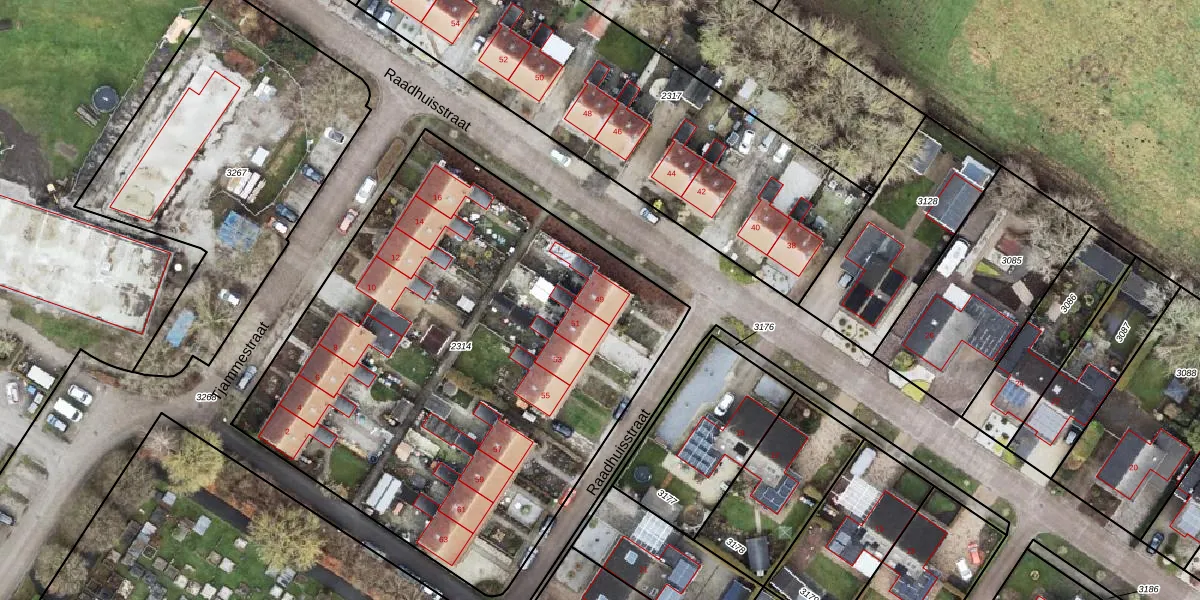 Het perceel waarop Raadhuisstraat 49 staat heeft een oppervlakte van 3145 m². Dit is een zeer groot perceel. De perceeloppervlakte wordt geregistreerd door het Kadaster. Gedetailleerde informatie over de maten van dit perceel kunt u vinden in het rapport Kadastrale kaart met maatvoering van Raadhuisstraat 49.
