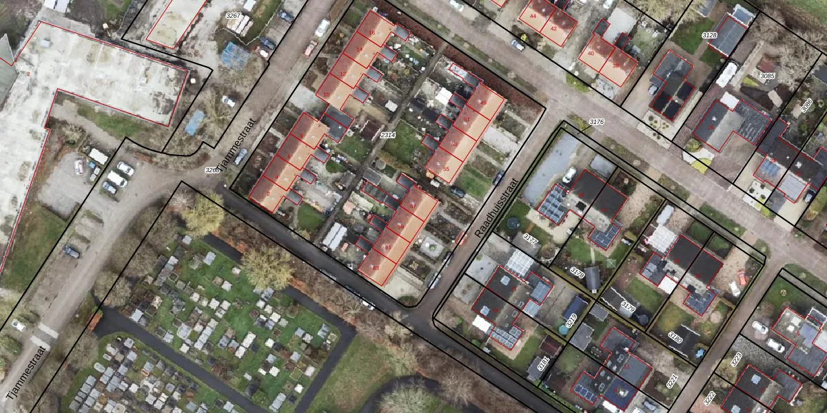Het perceel waarop Raadhuisstraat 57 staat heeft een oppervlakte van 3145 m². Dit is een zeer groot perceel. De perceeloppervlakte wordt geregistreerd door het Kadaster. Gedetailleerde informatie over de maten van dit perceel kunt u vinden in het rapport Kadastrale kaart met maatvoering van Raadhuisstraat 57.