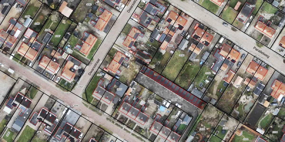 Gebruik de zoekbalk of klik op een perceel voor informatie over de adressen binnen dit perceel.