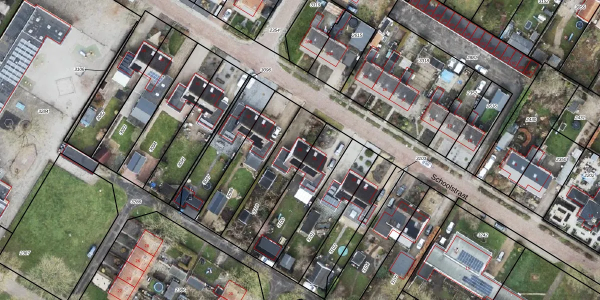 Het perceel waarop Schoolstraat 33 staat heeft een oppervlakte van 512 m². Dit is een groot perceel. De perceeloppervlakte wordt geregistreerd door het Kadaster. Gedetailleerde informatie over de maten van dit perceel kunt u vinden in het rapport Kadastrale kaart met maatvoering van Schoolstraat 33.