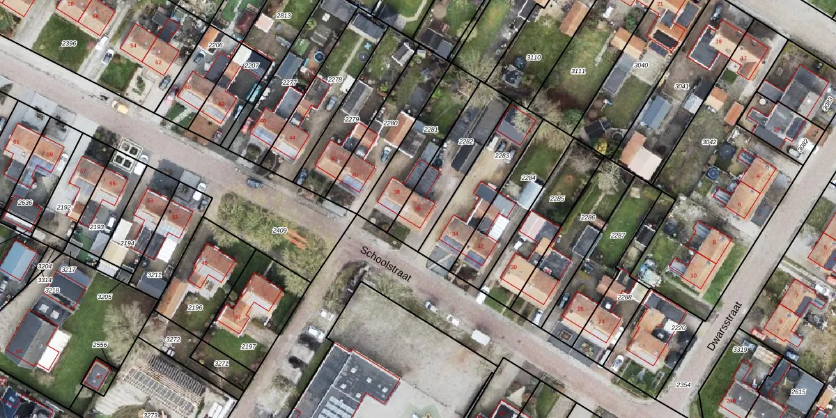 Het perceel waarop Schoolstraat 36 staat heeft een oppervlakte van 370 m². Dit is een groot perceel. De perceeloppervlakte wordt geregistreerd door het Kadaster. Gedetailleerde informatie over de maten van dit perceel kunt u vinden in het rapport Kadastrale kaart met maatvoering van Schoolstraat 36.