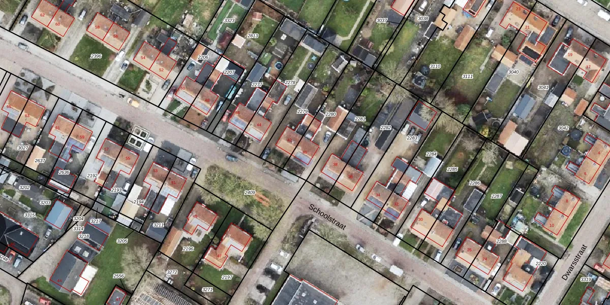 Het perceel waarop Schoolstraat 40 staat heeft een oppervlakte van 372 m². Dit is een groot perceel. De perceeloppervlakte wordt geregistreerd door het Kadaster. Gedetailleerde informatie over de maten van dit perceel kunt u vinden in het rapport Kadastrale kaart met maatvoering van Schoolstraat 40.