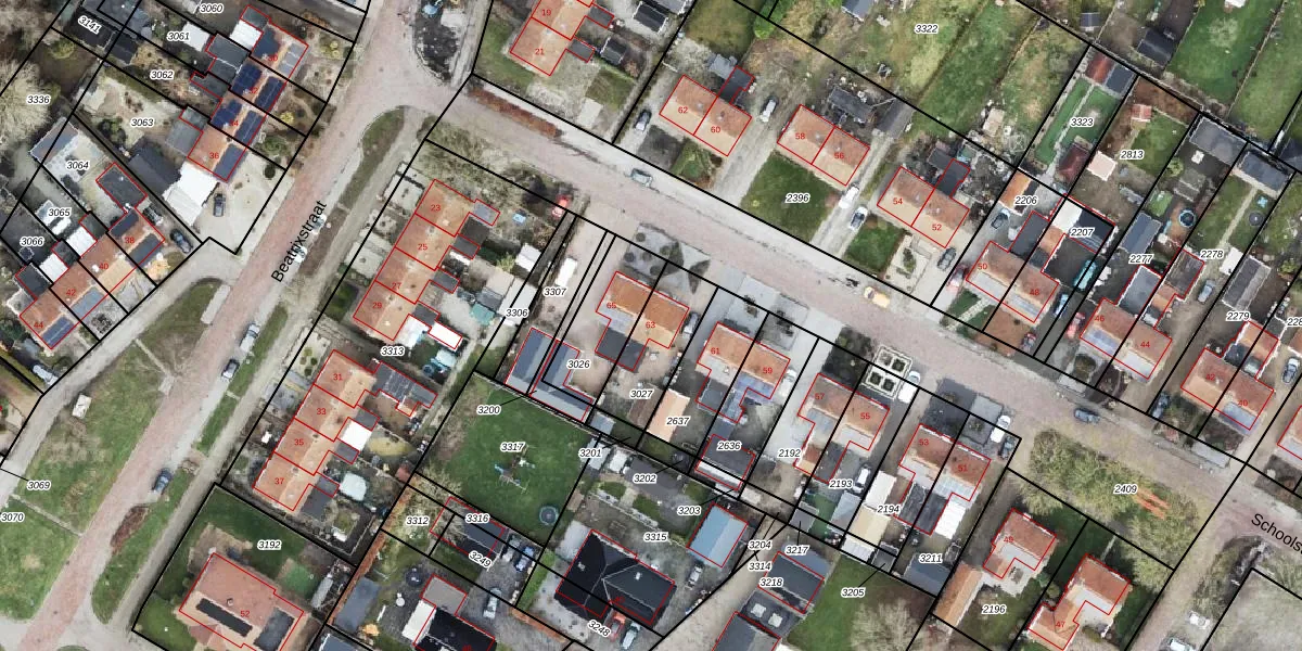 Gebruik de zoekbalk of klik op een perceel voor informatie over de adressen binnen dit perceel.