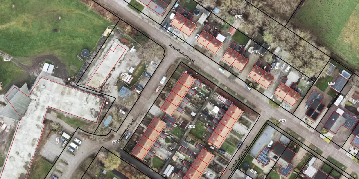 Het perceel waarop Tjammestraat 14 staat heeft een oppervlakte van 3145 m². Dit is een zeer groot perceel. De perceeloppervlakte wordt geregistreerd door het Kadaster. Gedetailleerde informatie over de maten van dit perceel kunt u vinden in het rapport Kadastrale kaart met maatvoering van Tjammestraat 14.