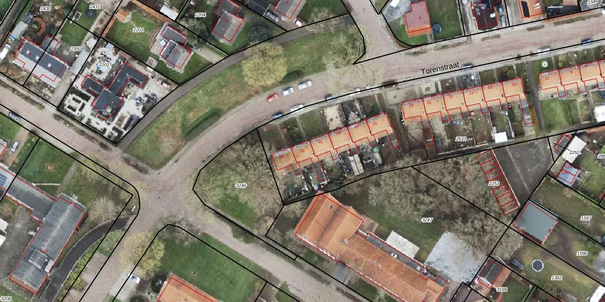 Torenstraat 33 is gelegen op kadastraal perceel BTA00I2633. Deze kadastrale aanduiding is uniek en wordt gebruikt door het Kadaster om eigendomsrechten en andere zakelijke rechten vast te leggen. Het perceel maakt onderdeel uit van de kadastrale gemeente Beerta.
