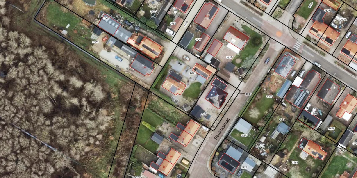 Gebruik de zoekbalk of klik op een perceel voor informatie over de adressen binnen dit perceel.