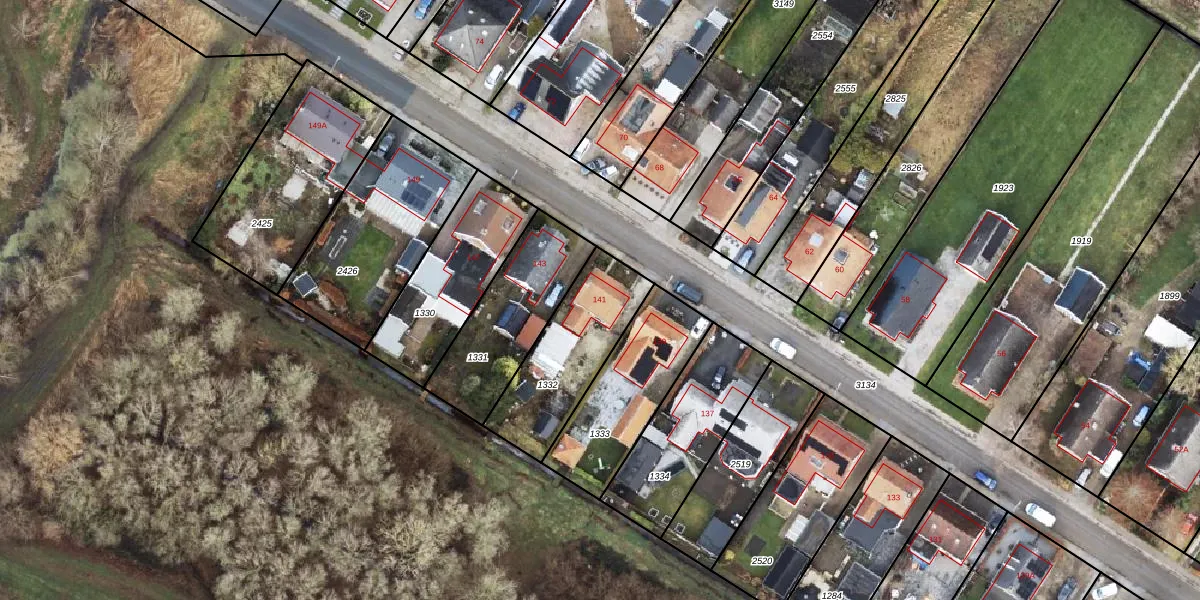 Gebruik de zoekbalk of klik op een perceel voor informatie over de adressen binnen dit perceel.