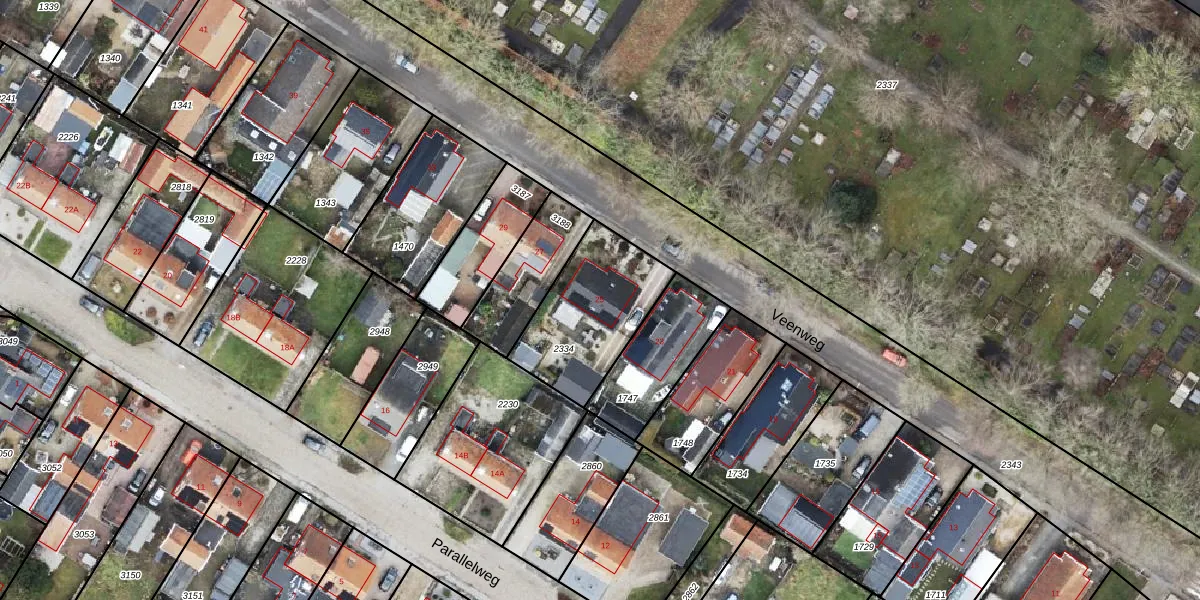 Het perceel waarop Veenweg 25 staat heeft een oppervlakte van 430 m². Dit is een groot perceel. De perceeloppervlakte wordt geregistreerd door het Kadaster. Gedetailleerde informatie over de maten van dit perceel kunt u vinden in het rapport Kadastrale kaart met maatvoering van Veenweg 25.